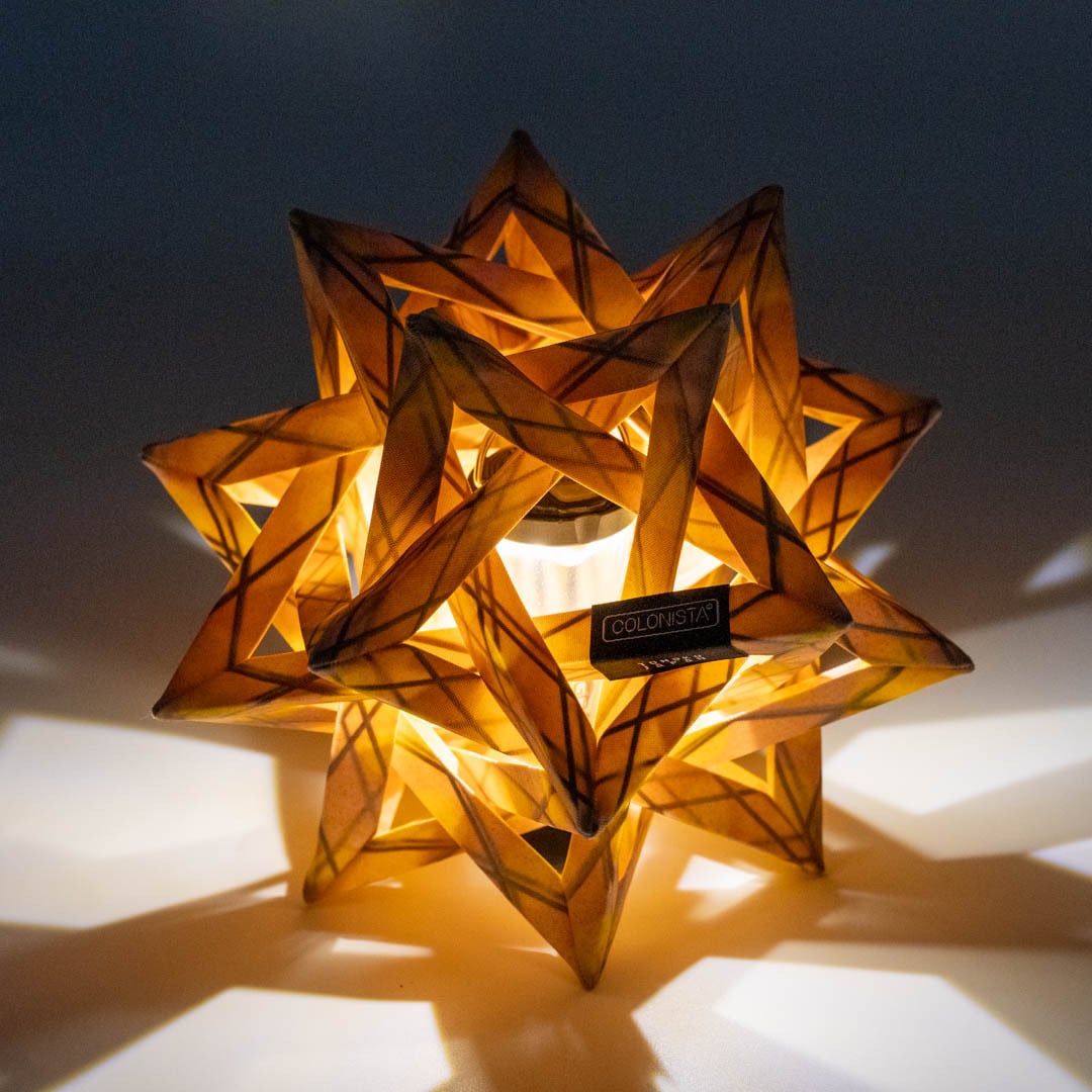 The COLONISTA CONPE10 is an original LED lantern shade, created with a unique sewing technique and 3D construction.